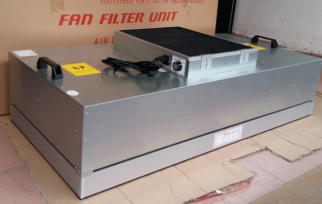 FFU工作通電后,風(fēng)機運轉(zhuǎn),離心風(fēng)機將空氣吸入,空氣到達FFU靜壓箱內(nèi),利用風(fēng)機壓力的作用空氣到達高效率過濾,通過高效率過濾后的空氣達到100級(美國聯(lián)邦209E標準)然后均勻地送出。