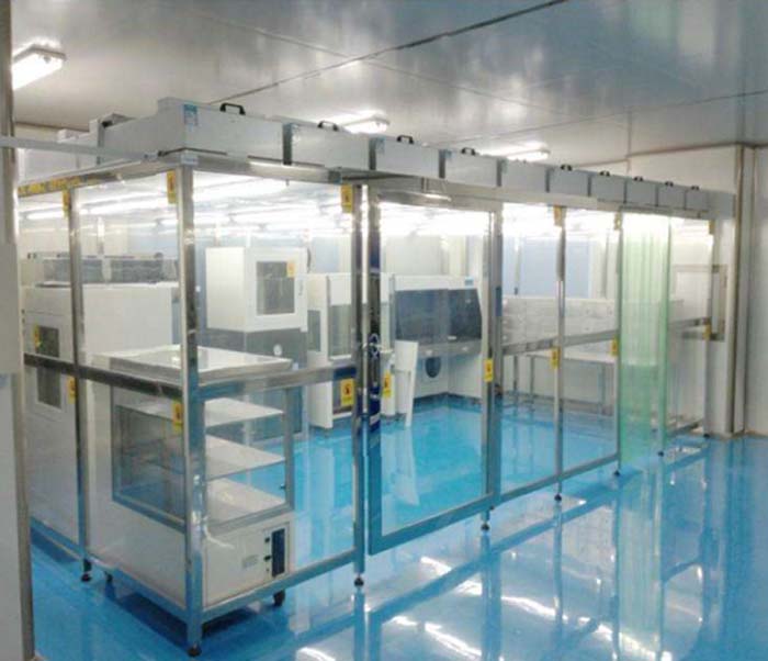 潔凈棚FFU及高效過濾器放置在由放在不銹網(wǎng)支架支撐棚架的托框上。頂部由盲板鋪蓋,密縫嚴密,四周用防靜電簾圍縫,四周底部利用正壓自然排風等形式,使?jié)崈襞飬^(qū)內(nèi)潔凈度達到1000級。潔凈棚其具有安裝快速、施工周期短、價格低廉、移動方便等特點,如流水線作業(yè)區(qū)域,高精確度產(chǎn)品組裝區(qū)。