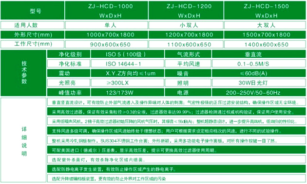 梓凈垂直流超凈工作臺技術(shù)參數(shù)