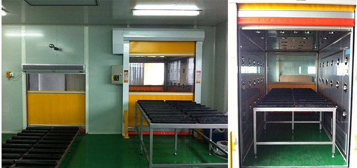 4、快速卷簾門流水線貨淋室(自動感應(yīng)控制快速卷簾門),流水線可做成整體一條線,門下降時接近流水線,也可將流水線分成三部分;