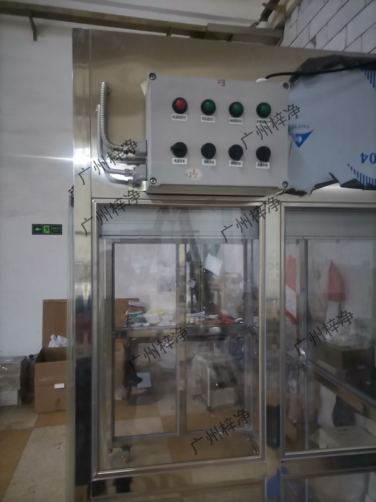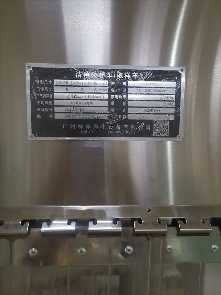5、工作區(qū)兩側為不銹鋼擋板,前后為條形防靜電防塵垂簾,達到理想防塵效果。“梓凈”牌防爆潔凈采樣車名牌6、配一臺大風量低噪聲進口風機0.165KW,確保風速大于0.45m/s;