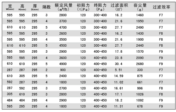 組合式中效V型過濾器技術(shù)參數(shù)組合式中效V型過濾器技術(shù)參數(shù)