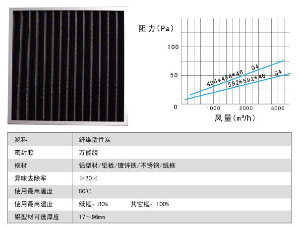 板式初效活性炭過濾器技術參數(shù)