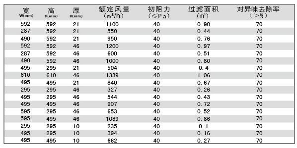 用戶選購指南-板式初效活性炭過濾器技術參數(shù)