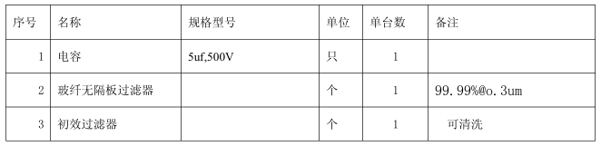 FFU定期維護項目包括馬達,風(fēng)機,電氣部件等。QQ圖片20151203120008表 4 ?消耗性部件的更換期間 ( 我司建議 )